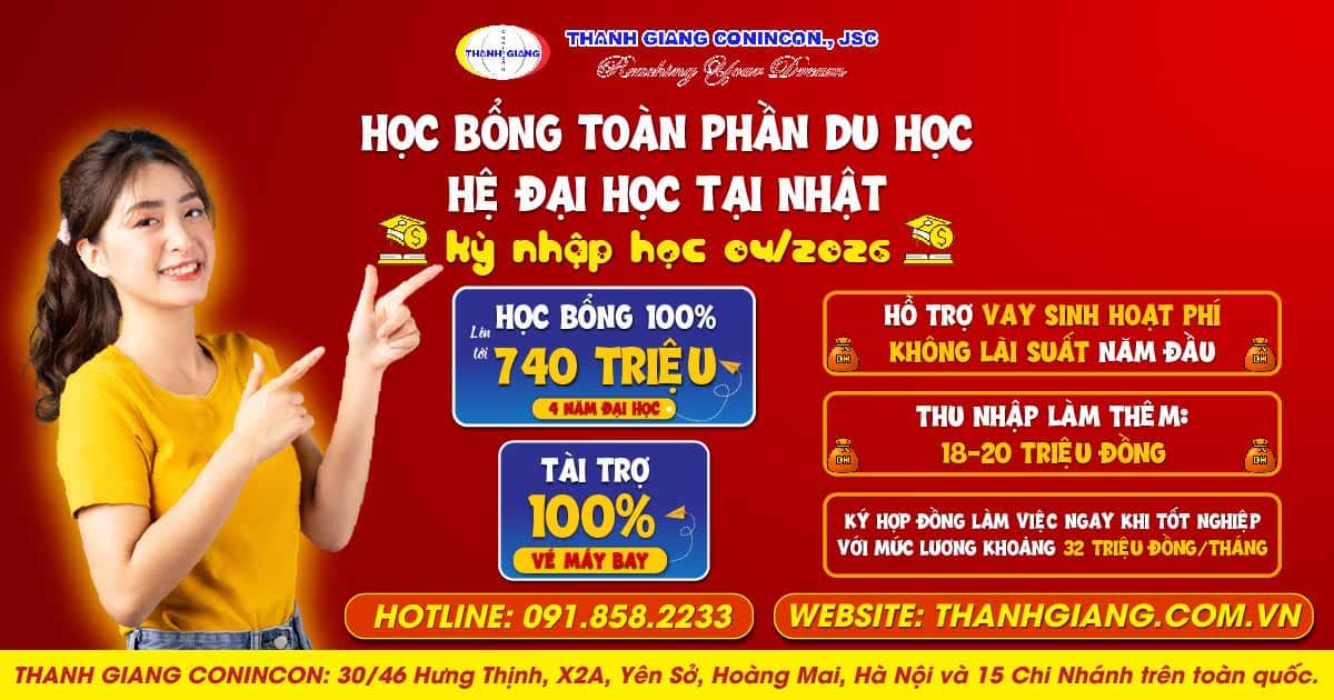 HỌC BỔNG TOÀN PHẦN DU HỌC HỆ ĐẠI HỌC TẠI NHẬT – KỲ NHẬP HỌC THÁNG 4/2026