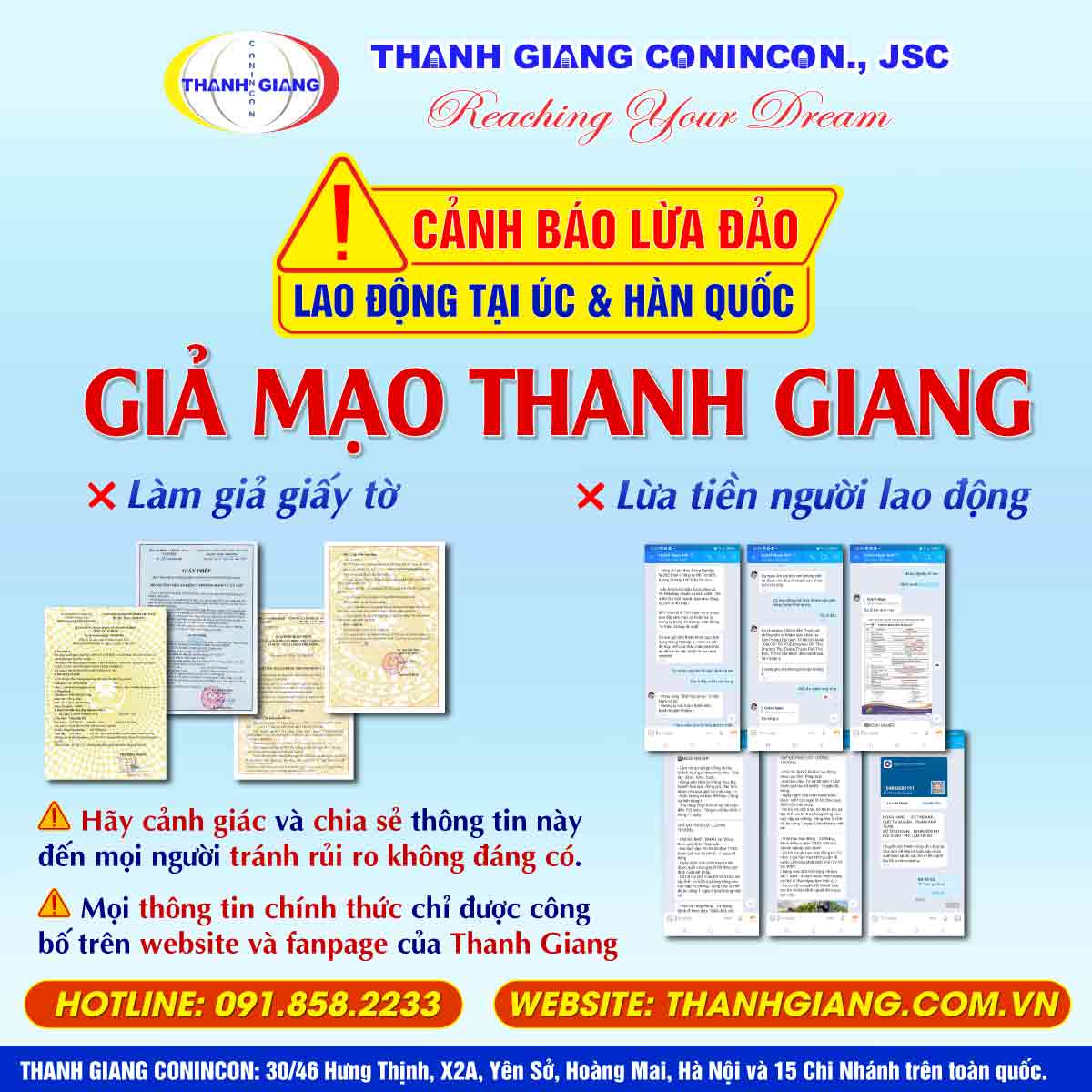 Cảnh báo giả mạo Thanh Giang – Lừa đảo lao động đi làm việc tại Úc