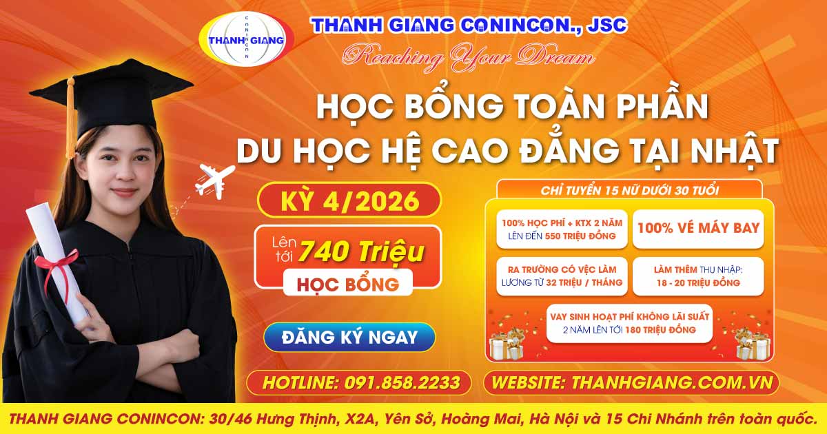 HỌC BỔNG TOÀN PHẦN DU HỌC HỆ CAO ĐẲNG TẠI NHẬT KỲ 4/2026 – CƠ HỘI HỌC MIỄN PHÍ VÀ LÀM TẠI NHẬT