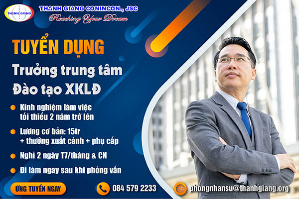 TUYỂN DỤNG TRƯỞNG TRUNG TÂM ĐÀO TẠO XUẤT KHẨU LAO ĐỘNG THANH GIANG