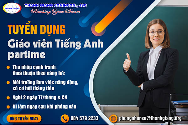 Thanh Giang tuyển dụng: Giáo viên Tiếng Anh partime