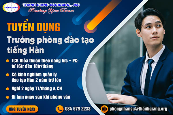 Thanh Giang tuyển dụng: TRƯỞNG PHÒNG ĐÀO TẠO HÀN