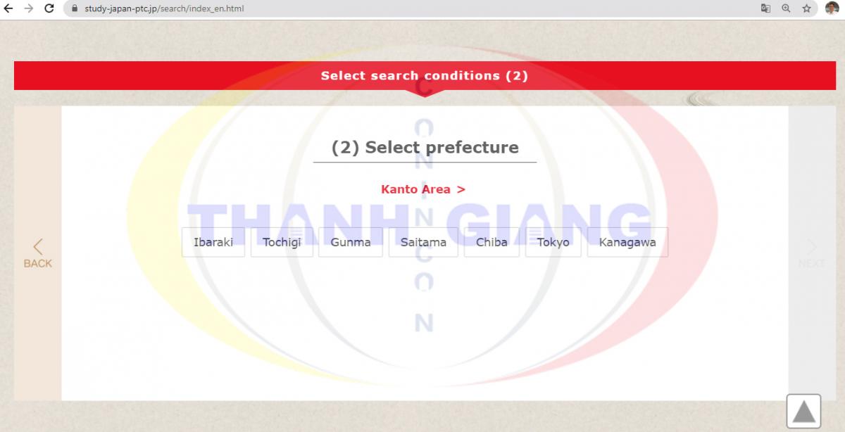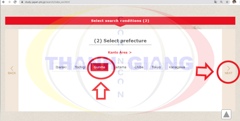 Ví dụ bạn chọn tỉnh Gunma => sau đó các bạn bấm vào mũi tên NEXT