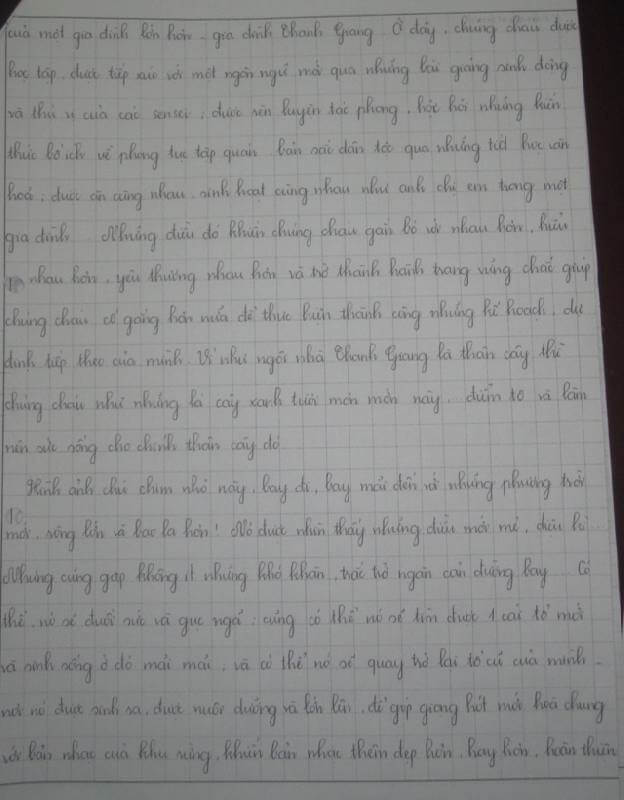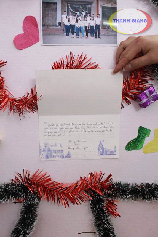 Năm nay, mặc dù chúng cháu không được đón giáng sinh và năm mới cùng với gia đình của mình nhưng lại được trở thành một thành viên mới của 1 gia đình lớn hơn - gia đình THANH GIANG. Ở đây, chúng cháu được học tập, được tiếp xúc với một ngôn ngữ mới qua những bài giảng sinh động và thú vị của các Sensei, được rèn luyện tác phong, học hỏi những kiến thức bổ ích về phong tục tập quán, bản sắc dân tộc qua những tiết học, được ăn cùng nhau, sinh hoạt cùng nhau như anh chị em trong một gia đình.. Những điều đó khiến chúng cháu gắn bó với nhau hơn, hiểu nhau hơn, yêu thương nhau hơn. Ví như ngôi nhà Thanh Giang là thân cây thì chúng cháu như những lá xanh tươi mơn mởn này... điểm tô và làm nên sức sống cho chính thân cây đó.