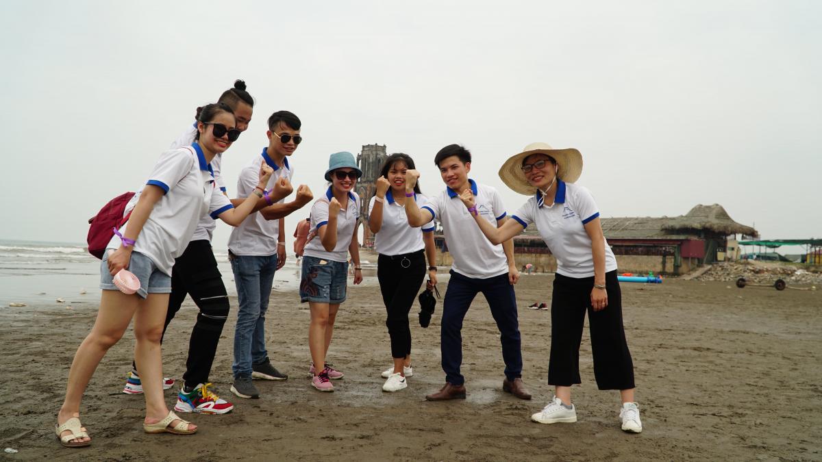 Mặc dù phải dậy từ khá sớm để di chuyển từ Hà Nội đến bãi biển Hải Lý, Nam Định tuy nhiên các bạn học viên ai cũng đều hào hứng, vui vẻ tràn đầy năng lượng cho một ngày hoạt động mới