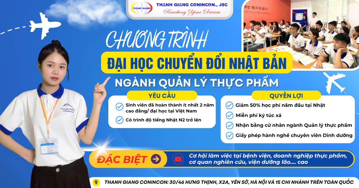 Bạn từng mơ được học tập và làm việc tại Nhật Bản nhưng lại lo ngại chi phí, rào cản tiếng Nhật hay thời gian học quá dài? Giờ đây, Chương trình Đại học chuyển đổi Nhật Bản - Ngành Quản lý Thực phẩm (Food Management) chính là chìa khóa mở ra cánh cửa đại học Nhật Bản cho sinh viên Việt Nam.