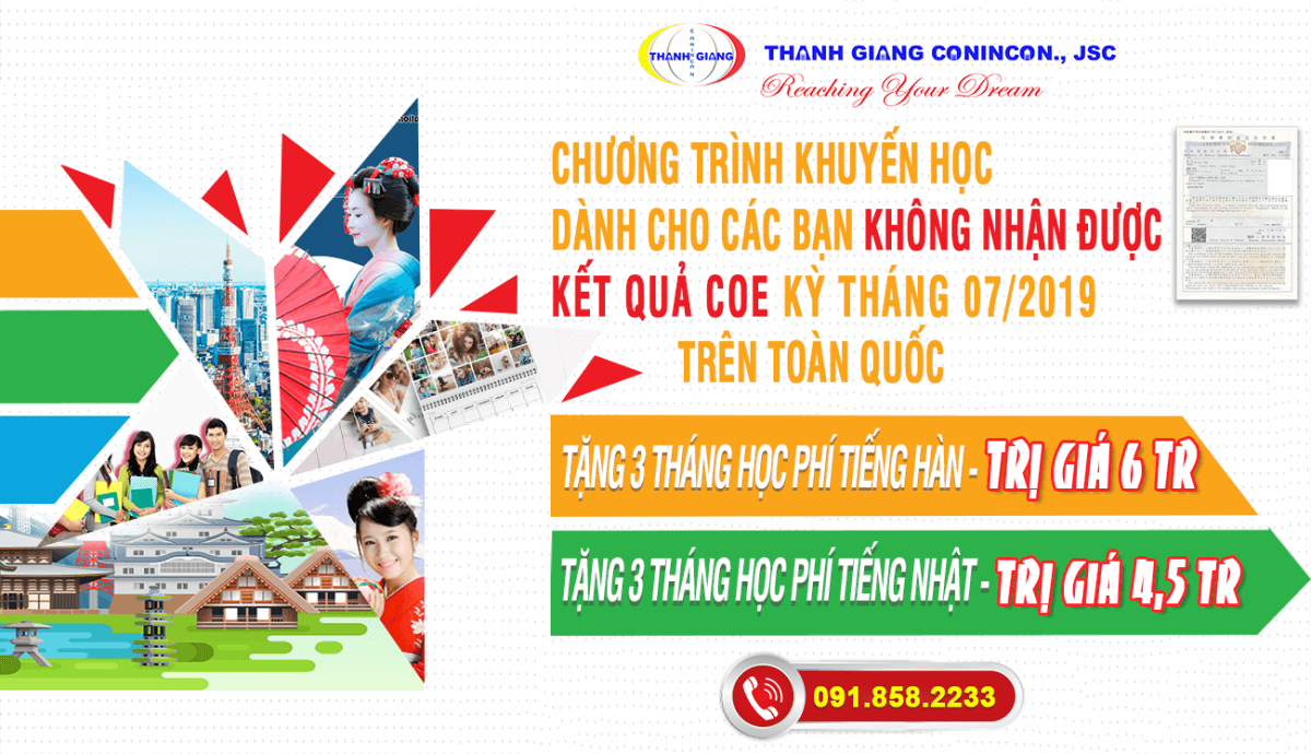 Với mong muốn góp một phần nhỏ bé sức lực của mình, để động viên các bạn du học Nhật kỳ7/2019 chưa đạt được ý nguyện. Thanh Giang xin phép được tặng một chương trình khuyến học dành cho các bạn du học sinh Nhật Bản trên toàn quốc mà chưa có được kết quả COE lựa chọn một số con đường mới như sau: