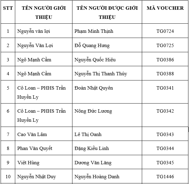 DANH SÁCH THAM GIA BỐC THĂM VOUCHER TRÚNG THƯỞNG