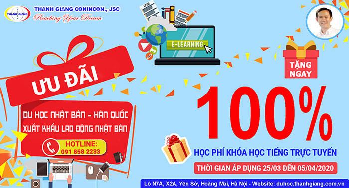 Ưu đãi giảm tới 46% các khóa học online Tiếng Nhật – Tiếng Hàn Thanh Giang