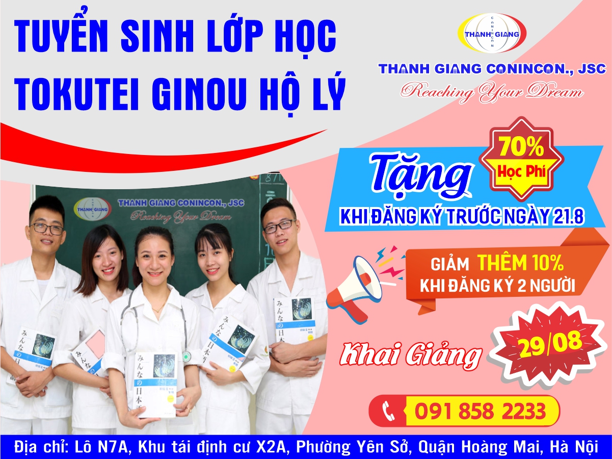 TUYỂN SINH KHÓA HỌC TOKUTEI HỘ LÝ – ƯU ĐÃI 70% HỌC PHÍ THÁNG 8