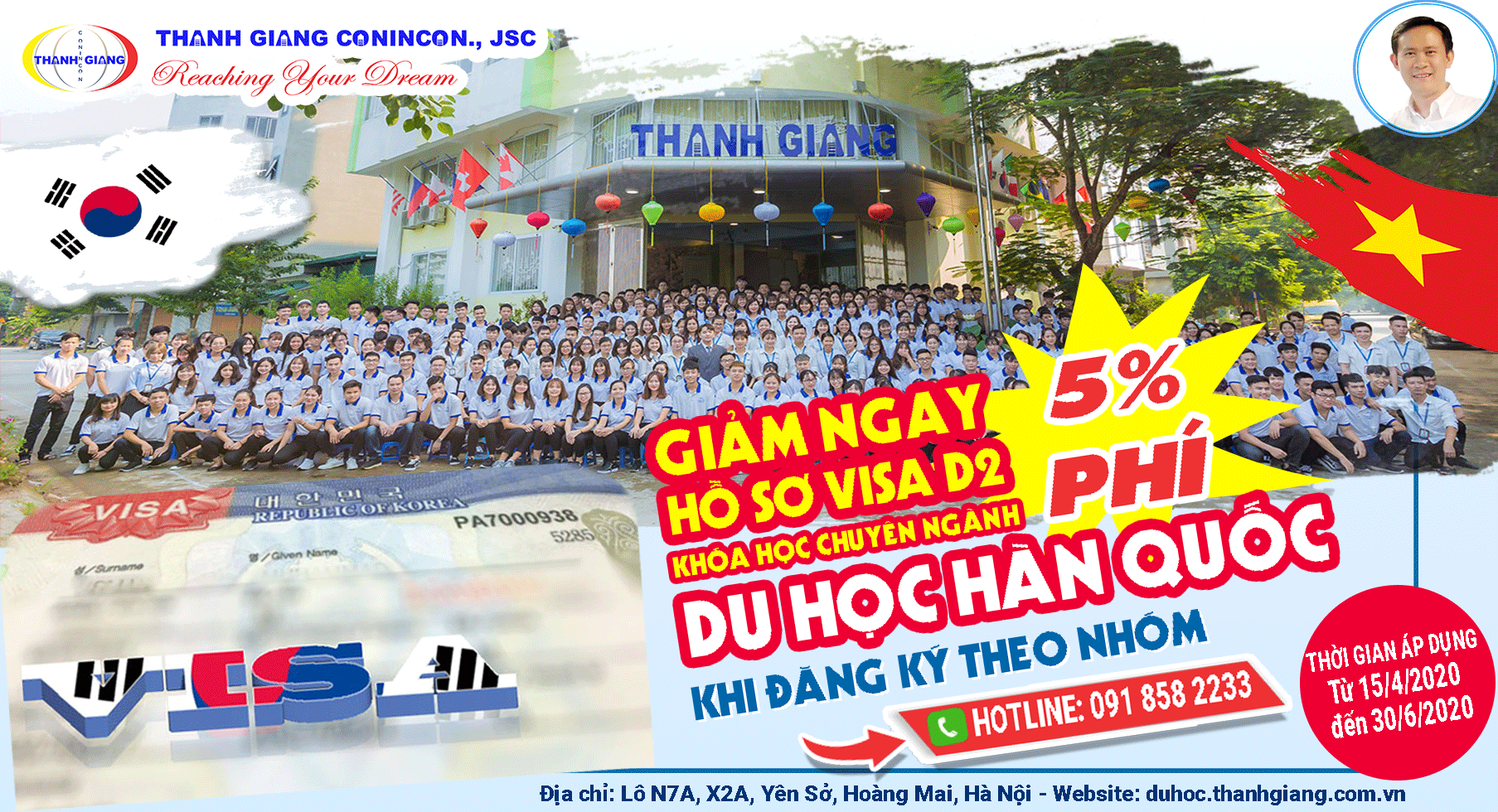 Ưu đãi giảm 5% phí hồ sơ visa D2 khóa học chuyên ngành du học Hàn Quốc