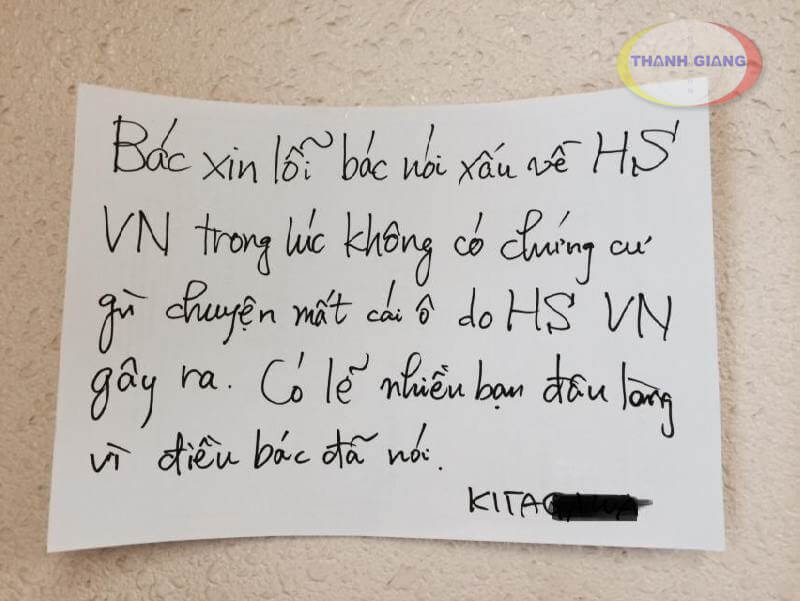 Thời gian gần đây cộng đồng sinh viên Việt Nam tại Nhật Bản bàn tán xôn xao về việc một bác người Nhật viết “Bác Kita… ghét du học sinh nhật bản Việt Nam vì có người lấy trộm ô của bác!” dán ở cửa ra vào của trường Nhật ngữ nơi bác làm việc. Trong khi Bác không có chứng cứ về việc đó.