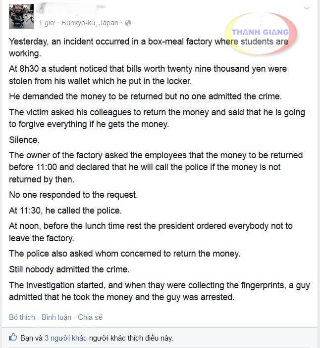Về việc này, Thanh Giang không có bình luận gì cả vì các bạn chắc cũng nghe rất nhiều về hình ảnh người Việt Nam mình hiện nay như thế nào tại Nhật Bản rồi. Hãy cùng đọc bài chia sẻ của một quản lý du học sinh Việt Nam tại Nhật Bản chia sẻ như sau: