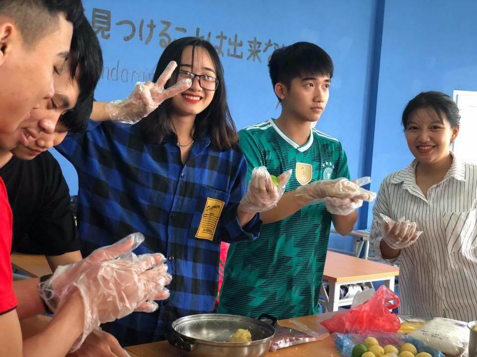 Cùng nhau nhào bột, viên tròn bánh thành những viên nhỏ, ai cũng cảm thấy hứng khởi với công việc của mình