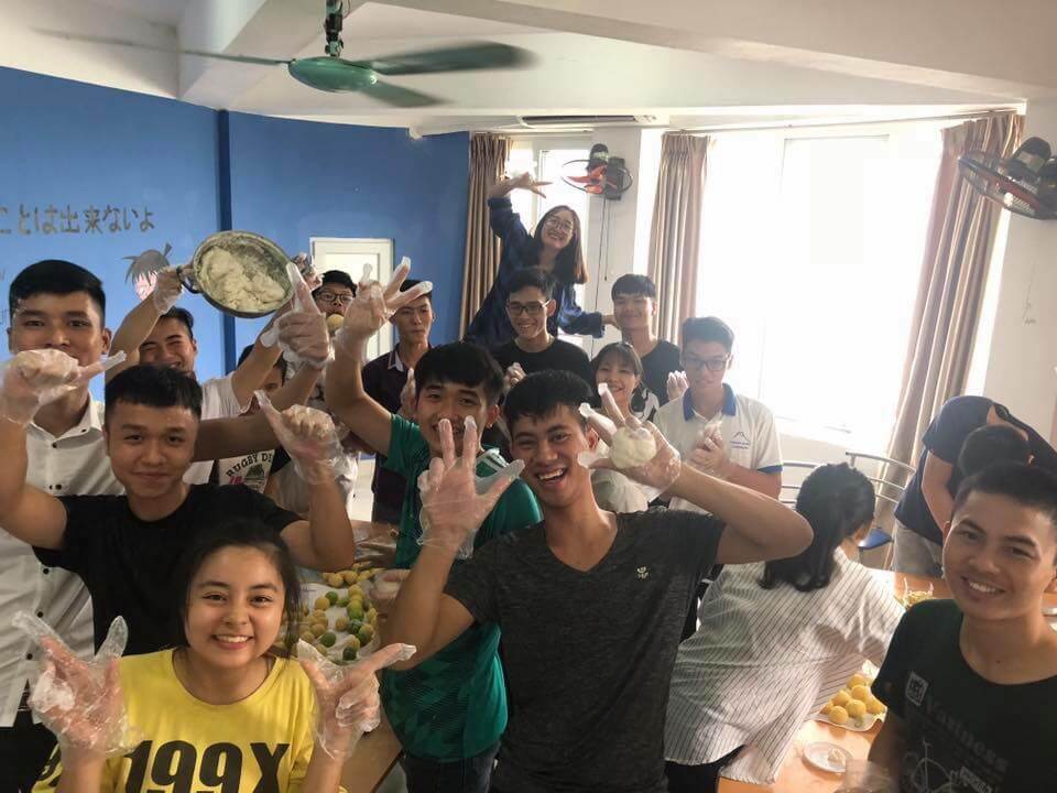 những tiếng cười đùa, những màn tung bột trắng xóa, những khuôn mặt dính đầy bột bánh tất cả đã khiến cho không khí càng thêm sôi động, ngập tràn hạnh phúc.