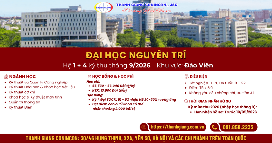 Du học Đại học Đài Loan 2026 trường Đại học Nguyên Trí hệ 1+4 – Lộ trình an toàn cho học sinh THPT