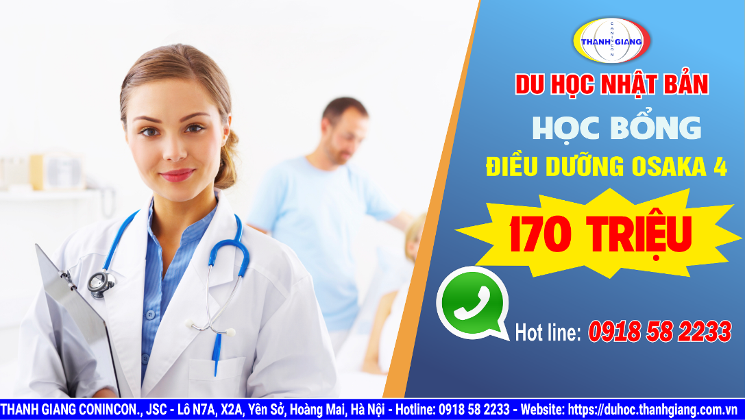 Bạn đang có ý định đi du học Nhật Bản trong năm tới?! Tin vui gửi đến bạn ngay trước thềm năm mới với học bổng điều dưỡng Osaka 4 trị giá lên đến 170 triệu đồng. Cơ hội vàng cho bạn nếu muốn học tập và ở lại làm việc với mức lương vô cùng hấp dẫn tại đất nước Nhật Bản.