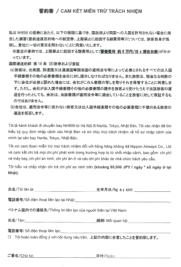 Các bạn chỉ cần điền đầy đủ thông tin tại Bản Cam Kết Miễn Trừ Trách Nhiệm như Ảnh 1.Khi ra tới sân bay các bạn sẽ được nhân viên hãng hàng không đưa cho bạn