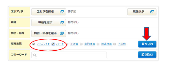 4. Chọn loại hình công việc: tích vàoアルバイト và パート như dưới đây: