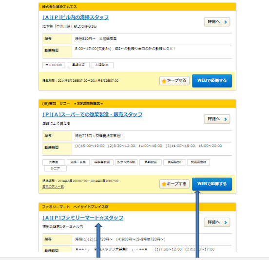 11. Sau đó bảng danh sách công việc lại hiện ra, để ứng tuyển công việc khác bạn chỉ cần nhấn WEBで応募する