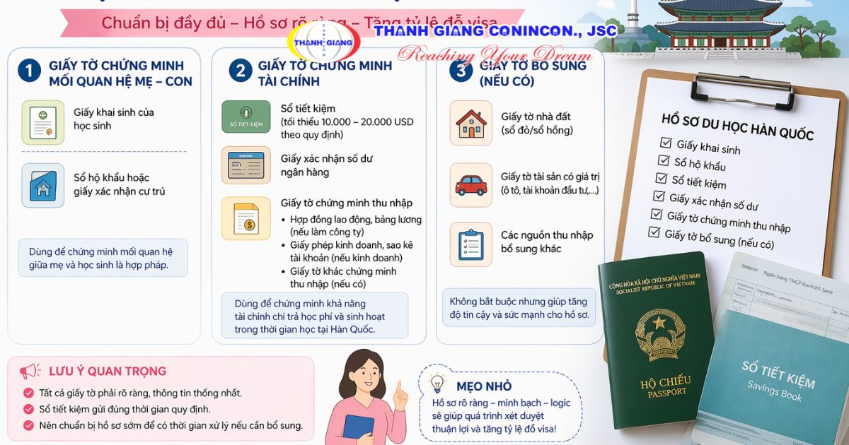 Những giấy tờ này không bắt buộc nhưng trong nhiều trường hợp, chúng giúp hồ sơ mẹ đứng hồ sơ du học Hàn Quốc trở nên có chiều sâu hơn và giảm khả năng bị yêu cầu giải trình.