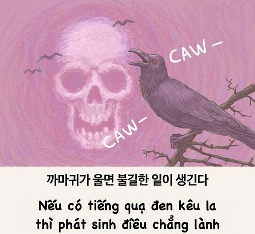 Người Hàn Quốc rất lo lắng khi nghe thấy tiếng chim quạ, vì con quạ thường báo hiệu những điều không tốt lành. Điều này cũng giống với người Việt Nam sợ tiếng chim lợn kêu.