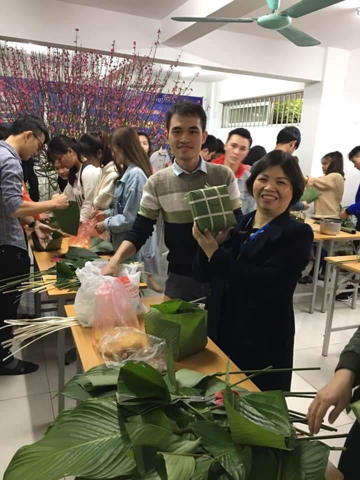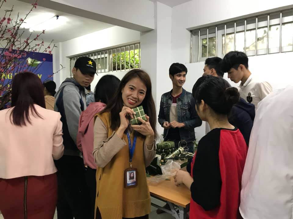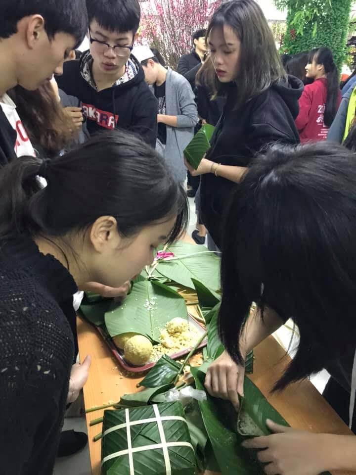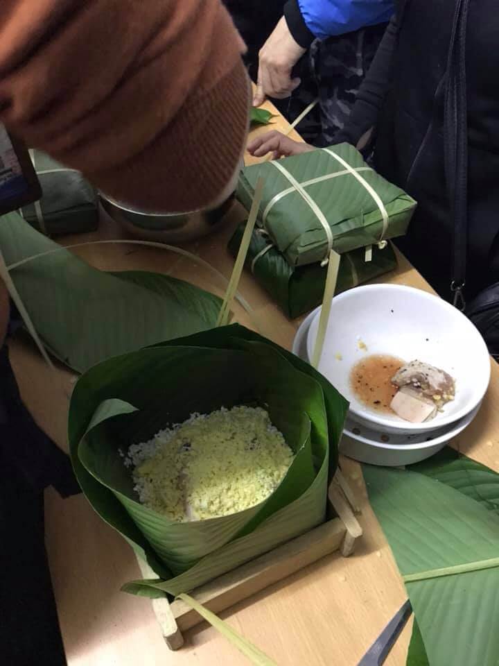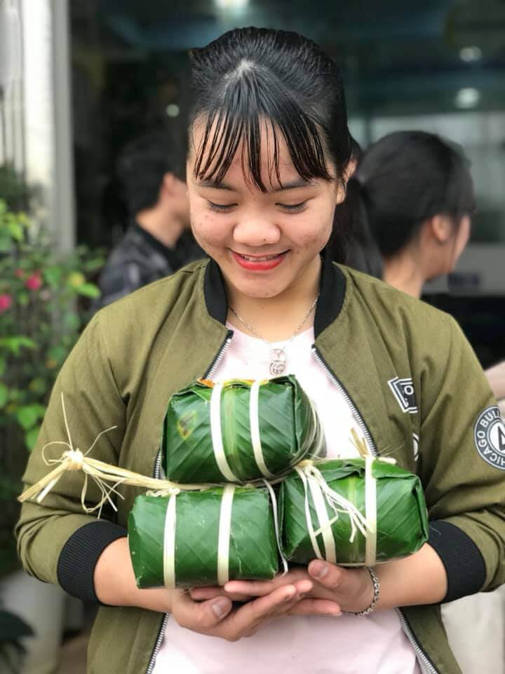 Dưới đôi bàn tay khéo léo của các bạn học viên và nhân viên Thanh Giang những chiếc bánh chưng đã dần được hoàn thiện nhìn rất vuông vức và đẹp mắt