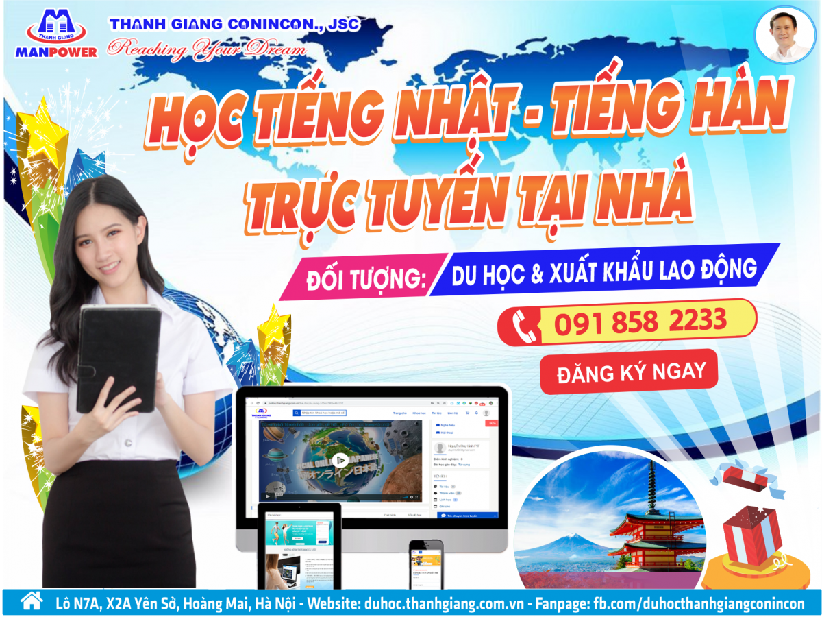 THANH GIANG TUYỂN SINH DU HỌC-XKLĐ NHẬT BẢN, DU HỌC HÀN QUỐC KẾT HỢP ĐÀO TẠO TRỰC TUYẾN TẠI NHÀ