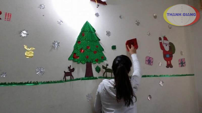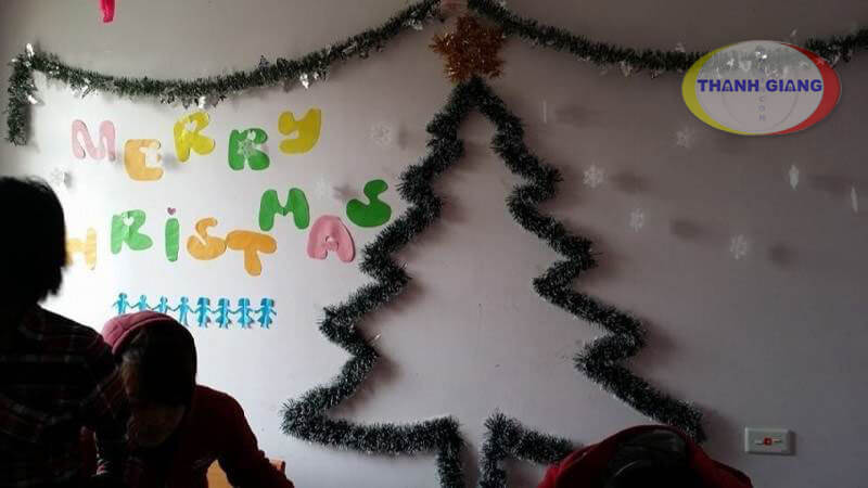 Ngay từ tầng 1 văn phòng làm việc tại Thanh Giang đã được trang trí đẹp mắt với những biểu tượng của mùa Giáng sinh an lành và năm mới nhiều niềm vui. Dọc cầu thang đi lên là hình ảnh các lớp học được bài trí rất đẹp mắt. Ấn tượng nhất là cây thông Noel bé xinh được trang trí bởi sự khéo léo của các nhân viên văn phòng. Nhưng mọi thứ cầu kì và lung linh hơn được nhường chỗ cho các du học sinh của Thanh Giang thỏa sức sáng tạo.