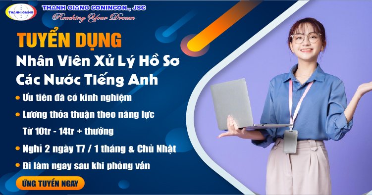 TUYỂN DỤNG NHÂN VIÊN XỬ LÝ HỒ SƠ CÁC NƯỚC TIẾNG ANH (THỊ TRƯỜNG CANADA, ÚC, MỸ)