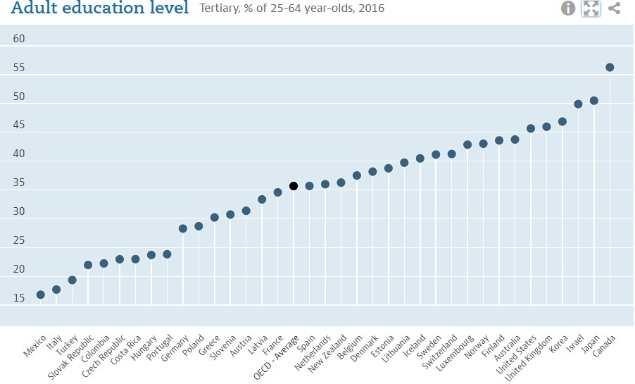 Bảng xếp hạng giáo dục người trưởng thành do tổ chức OECD ( Tổ chức hợp tác kinh tế và phát triển ) – Nhật bản xếp vị trí thứ 2