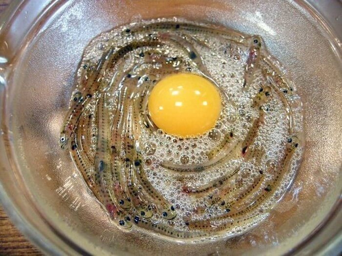 Trứng sống trộn với cơm hoặc với cá con sống
